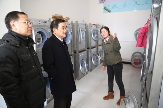 在大学生自主创业孵化园区洗衣店,郑怀庆询问了创业学生的日常工作情况,对创业学生给予鼓励。走到正在建设的图书馆前,郑怀庆听取了院领导对图书馆面积、容量以及日后学生社团活动中心建设的规划,他提出了多项指导意见。