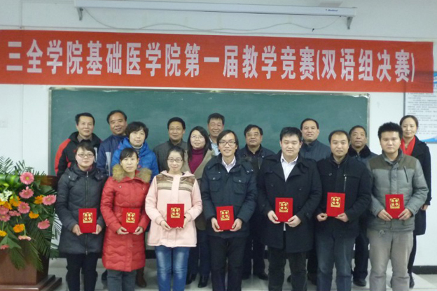 12月26晚,基础医学院第一届青年教师教学竞赛决赛在平原校区第一教学楼B204教室举行。我院院长杨捷、副院长王洪兴出席了活动,本次竞赛的评委、基础医学院负责同志、各参赛选手及基础医学院全体教师参加了竞赛。