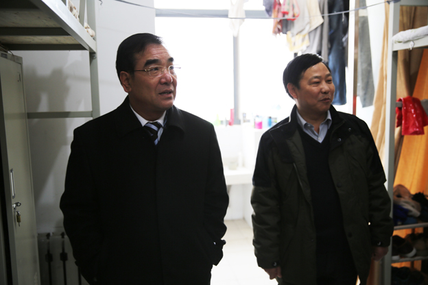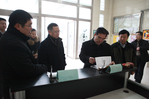 原志庆一行先后视察了新乡校区的问学楼、学生公寓、学院餐厅,平原校区的基础医学楼、第一院系楼、男生公寓、学院餐厅、警卫室等场所,听取院领导及相关部门负责人的安全工作汇报。原志庆仔细询问了学生公寓的结构布局、消防设施、宿舍登记、监控设备等情况,查看了餐厅餐具消毒、厨房卫生状况。他还详细了解了两校区资源布局、新校区周边环境、校门安全、围墙高度等问题,询问了新校区职工住宿、废水处理等情况。原志庆对新区的建筑布局、校园安全表示满意,对两校区的安保工作提出了指导意见。