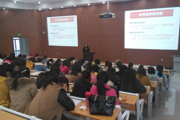 3月10日下午,高等教育自学考试本科助学专业宣讲大会—郑州大学专场在我院平原校区第一教学楼D2教室举行,护理学院专科在校生近500人参加了大会。