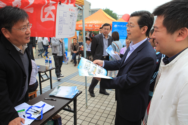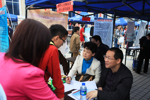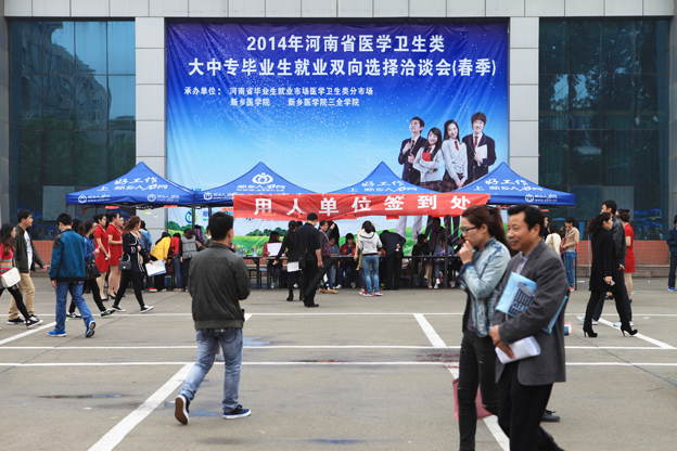 4月26日,2014年河南省医学卫生类毕业生就业洽谈会(春季)在新乡医学院南校区成功举办。本次洽谈会共吸引了487家省内外知名企事业单位前来参会,提供就业岗位16597个,需求范围涵盖了我院各专业,本次参会单位的层次高、规模大,参会单位数及提供岗位数都达历年新高,为我院广大2014届毕业生搭建了有效的择业平台。