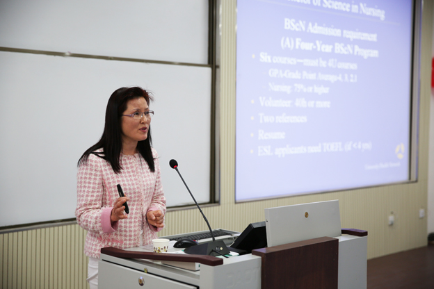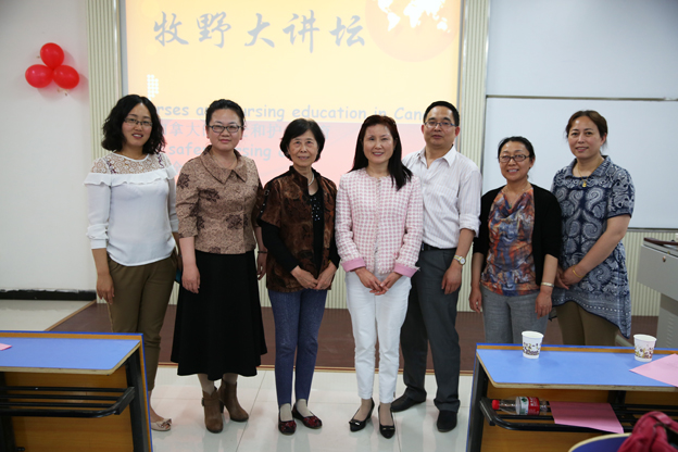5月16日下午,由我院团委主办,护理学院承办的牧野大讲坛之“Nurses and Nursing education in Canada For Safer Nuring Care”在平原校区第一教学楼B301教室举行,本次讲座特邀加拿大安大略省注册护士、护理管理硕士郭璠老师担任主讲。我院党委副书记张钢出席。