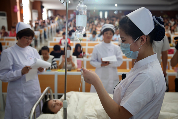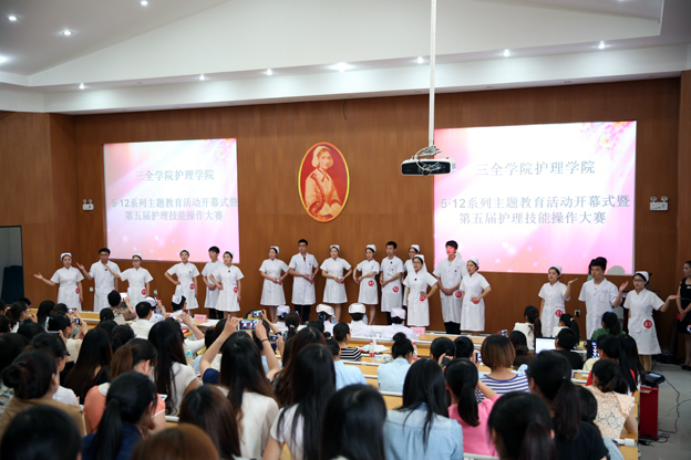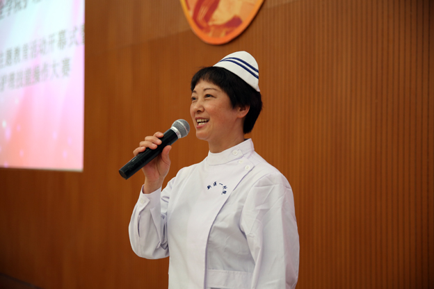 王洪兴在致辞中向辛勤工作的临床一线的护理工作者和教师们致敬,并对主题教育活动的成功举办表示祝贺。他说,近年来,学院进入发展保持跨越式发展的良好势头,护理学也成为我院品牌专业和特色专业。作为一所新建本科医学高等学校,评判学校培养学生是否合格的重要标准之一就是临床技能的应用。护理学院在庆祝国际护士节之际,举办护理技能大赛是符合我院重视临床技能发展要求的,是提高学生临床技能水平的有效途径,具有很强的操作性和实际意义。他希望,此次竞赛能帮助我们进一步规范操作流程和手法,进一步增强学生的实战经验,为步入工作岗位奠定牢固的专业技能基础,争取推出优秀学生参加省市甚至是国家级的护理技能操作比赛。