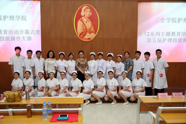 本次竞赛特邀新乡医学院三所附属医院的李素芬、李栓荣、张冬红、梁义红、侯永华和护理学院实验中心主任护师曹瑾玲等护理专家和前辈担任评委,新乡医学院护理学院副院长薛松梅任评委会主席。