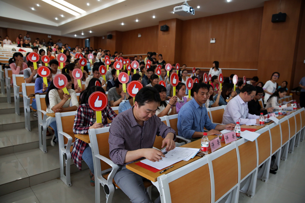 本届大赛历时一个月,全院11个院(系、部)和9家临床教学单位,共计200余位教师参加了比赛,最终有30位教师脱颖而出,参加了5月16日、17日的决赛。决赛分临床教学组,普通教学组和双语教学组分别进行,在环节设计上更加科学合理,首次将教师说课和综合素质测评引入比赛,在较短的时间内对教师的各项能力和素质进行360度考察。此外,大赛为凸显学生在课堂教学中的主导位置,首次采取学生评委为喜欢的教师给“赞”的形式投票,将学生“喜不喜欢,接不接受”作为考察参赛教师的一项重要指标。