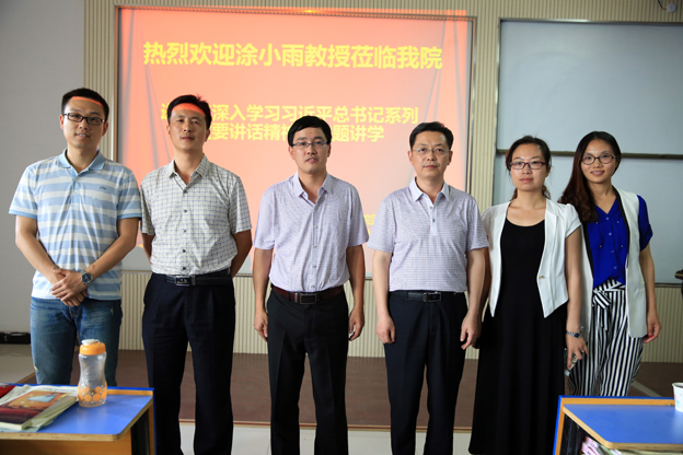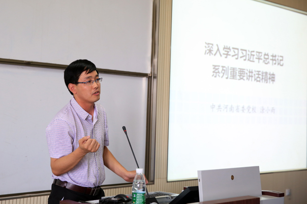 5月26日下午,由校团委主办、检验与影像学院承办的牧野大讲坛系列讲座之“深入学习习近平总书记系列重要讲话精神”在平原校区第一教学楼B302教室举行。中共河南省委党校涂小雨教授主讲,我院党委副书记王金文出席本次讲座。