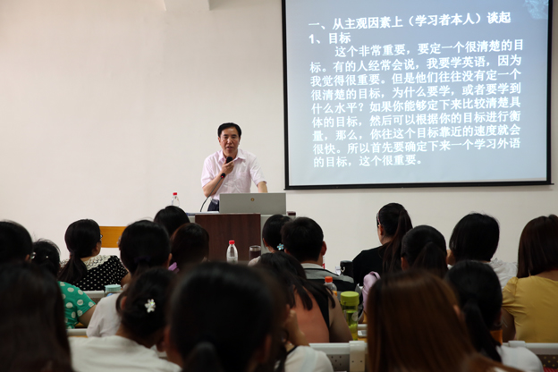 讲座中,邱教授从英语学习的主观因素、客观条件、学习方法以及学习英语的误区四个方面详细阐述了如何学好外语。邱教授提出学生应根据自己的实际情况树立正确的学习目标。培养英语的学习兴趣,端正个人的学习态度对学好英语至关重要。邱教授强调了语言环境和学习内容的重要性,通过个人切身体会,邱教授介绍了如何创造语言学习环境,如何选择英语学习内容。此外,邱教授建议学生要主动学、灵活学、坚持学、反复学、有声的学,最终确定适合个人的英语学习方法。