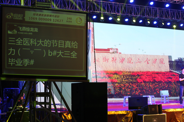 晚会同时发起微博话题#大三全毕业季#,微博不断刷新,小小的微博墙铺满了同学们离别的情绪:“兄弟、姐妹,再见!”,“全全,你在我心中是最美!”“大三全,千姿百态!”……