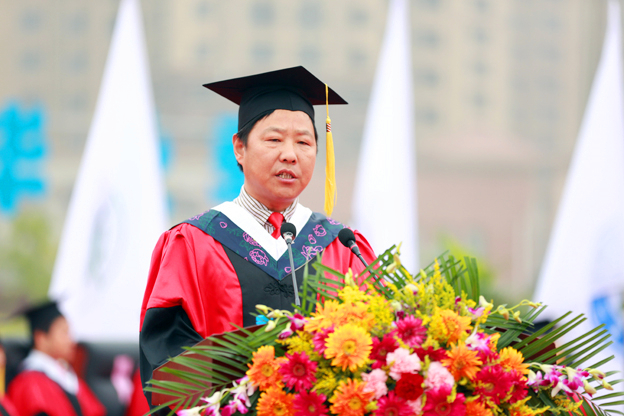 杨捷院长作毕业寄语。他向圆满完成学业的3280位毕业生表示诚挚的祝贺,向为毕业生成长进步默默奉献的老师、家长表示衷心的感谢和崇高的敬意。临行叮咛,意深情重。杨院长说,六月是个承前启后的季节,它前面是放飞梦想、播种希望的春天,后面是积累知识、收获未来的秋天。青春不散场,且行且成长。他向同学们寄语三个“说说”:“关于大学。所谓大学之道,在明明德,在亲民,在止于至善。大学应该是一个让人格物致知、诚意正心,不断学习知识,提升品格,完善自我,进而达到齐家、治国、平天下目的的修行场所。当我们从这里离开的时候,是一个知识能力、思想道德、人格魅力等各方面都更加圆满,能够以自身行为产生正能量的人;关于梦想。《中国合伙人》中成冬青有一句话:梦想就是一种让你感到,坚持就是幸福的东西。同学们能够不管今后在任何岗位,身处何种境地,永远坚守内心的梦想,把梦想当成一种信仰。敢于梦想才有希望,用坚定的信念、执着的勇气和果敢的行动来实现自己的梦想是我对大家殷切的希望;关于命运。命是弱者的借口,运乃强者的谦辞。没有谁是生下来就注定是成功者,失败或成功都是各项因素的叠加和积累。抱怨命运不公只是消极、懦弱的心态表现。”杨院长希望同学们“信命但不认命,突破自我,挑战命运,创造人生的奇迹”