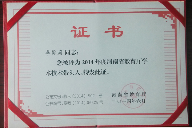 日前,河南省教育厅公布了2014年度河南省教育厅学术技术带头人评选结果,我院李勇莉副教授入选,获得此项荣誉称号。