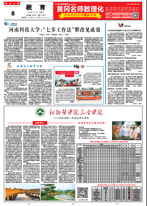 7月4日,《河南日报》第6版报道我院办学基本情况及2014年招生计划: