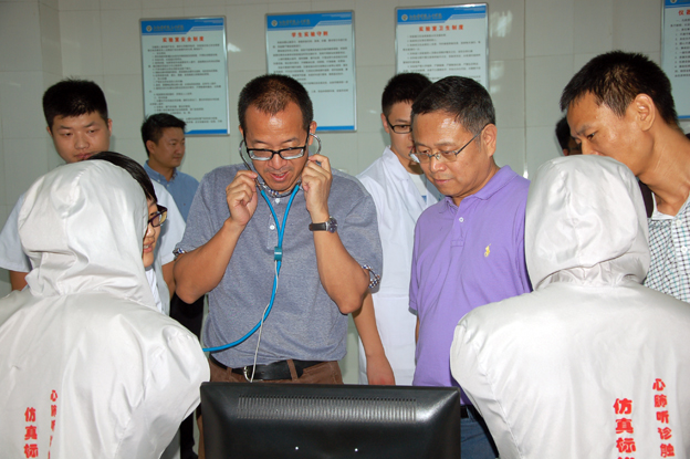 俞敏洪一行在杨捷院长陪同下,饶有兴趣地参观了我院新乡校区。在问学楼的口腔、诊断、美容、眼视光等实验室,他仔细倾听相关院系负责人及实验室工作人员的讲解,亲自体验一部分仪器设备,对我院实验室的技术条件表示赞赏。俞敏洪不时向杨捷院长了解我院各方面的发展情况,双方进行了友好交流。