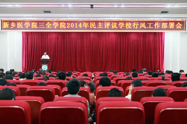 7月4日上午,我院在新乡校区问学楼学术报告厅召开2014年民主评议学校行风工作部署会。院领导王志凯、杨捷、王金文、王洪兴、张钢、沈雁霞出席会议,各院系、部门负责人、教师代表、学生代表参加会议。