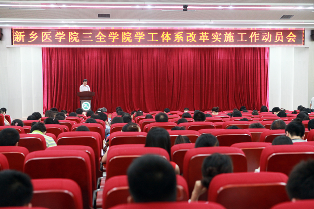 7月4日上午,我院学工体系改革实施工作动员大会在新乡校区问学楼学术报告厅召开。我院党委书记王志凯、院长杨捷等全体院领导出席,各院(系、部)和各职能部门负责人,学务部、团委、就业指导服务中心全体人员、全体辅导员、全体生活老师及部分学生代表共计三百余人参加。仪式由院长办公室主任史世锋主持。