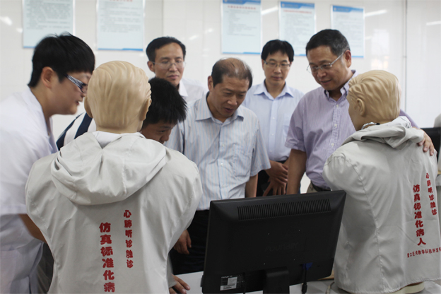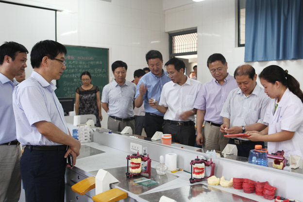 会后,各位专家实地参观了我院诊断学、口腔技工、眼视光技术、医学美容等实验室,观看了我院口腔医学技术专业学生的实验作品。参观过程中,各实验室负责人向来访专家详细介绍了我院实验室的设备和实际教学情况,并邀请专家亲自体验部分实验仪器设备。