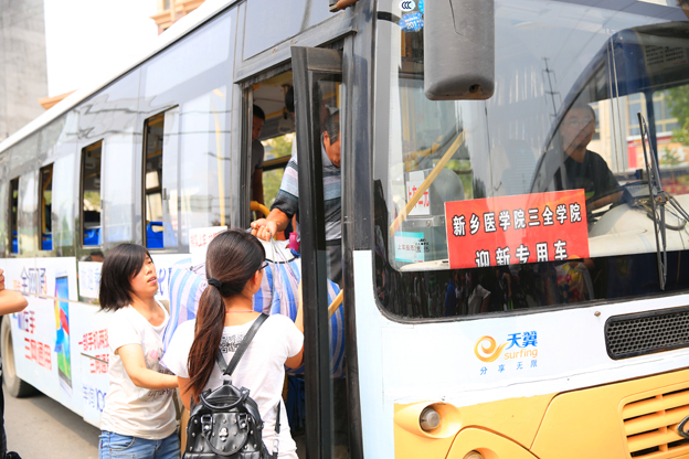 学院在新乡火车站、汽车站、高铁站分别设立迎新点,不间断接送学生及家长来校,15辆大巴车穿梭两个校区接送新生,做到“车满就发”。迎新的老师、志愿者们不辞辛劳,用心为新生及家长提供细致周到的人性化服务——从新生接站,到手续办理,再到搬运行李、入住宿舍,实行 “心贴心,手握手”的服务。