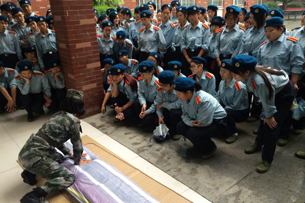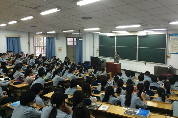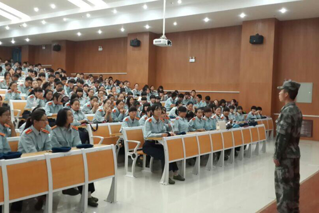 由于天气原因,训练场地临时安排在两校区教室,训练内容主要就此次军训的要求与纪律、内务的整理与标准、军姿的动作与要领以及军事电影观赏与讲解来开展。在与学生的初次交流中,教官们激励新生要以饱满的热情参与军训,在军训中铸就强健的体魄、磨练顽强的意志、培养良好的素质,希望同学们能通过严格的军训,加强组织纪律,学会克服困难,改善身体条件,养成良好习惯。教官激情饱满的话语让同学们对即将到来的军训充满向往,同学们纷纷表示要在军训中培养自己坚韧不拔的意志,百折不挠的精神,艰苦奋斗的作风,要学习教官的好思想、好作风、好品德,并在今后的学习生活中发扬光大。