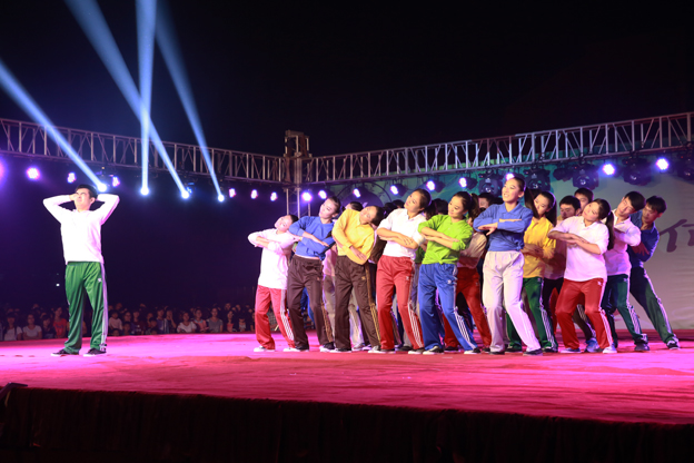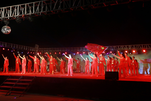 第四篇章是“圆梦,盛世华章”。刚柔并济的武术表演谱写出了盛世的风采,舞蹈《鲜红的旗帜》在舞台上飘扬,激起了观众的爱国热情。