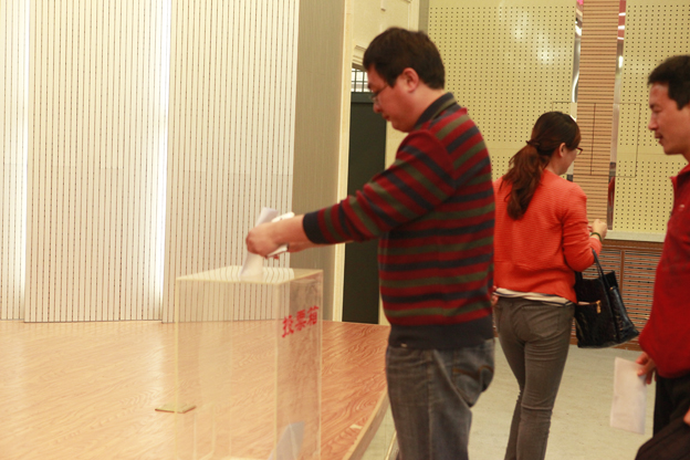 最后,参会人员认真填写《新乡医学院三全学院党的群众路线教育实践活动群众评判表》,并将评判表投入了票箱。