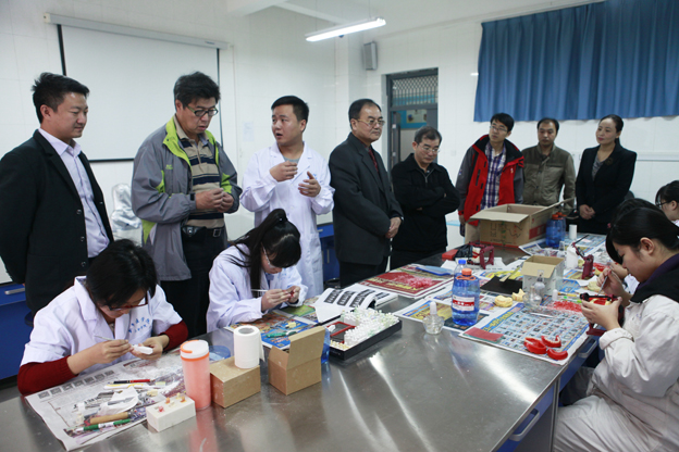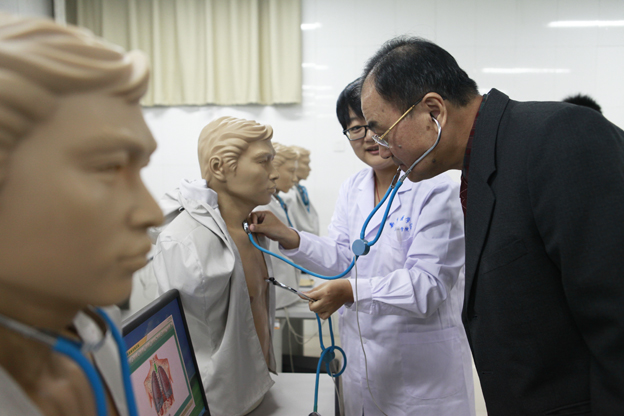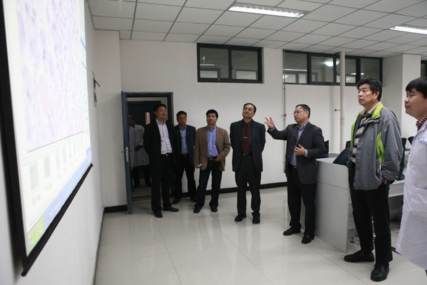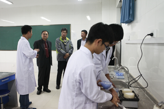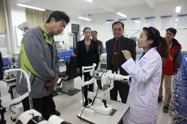 蒋初泰一行首先参观了我院新乡校区的口腔实验室、眼视光实验室和诊断实验室,随后来到我院平原校区,在杨捷的带领下参观了解剖学实验室、干细胞实验室,和数码互动数码互动实验室,并由相关教师对部分设备进行了演示。