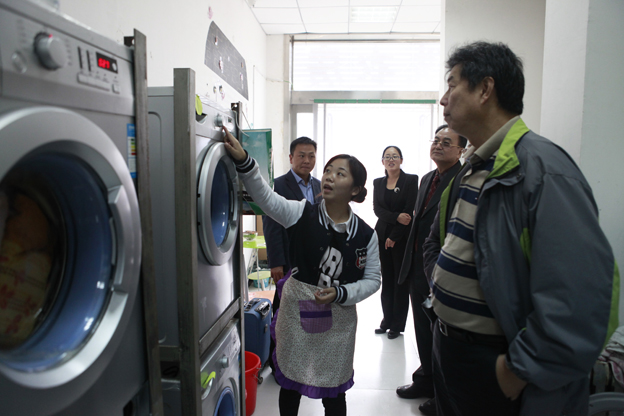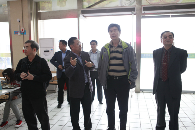最后,蒋初泰一行还参观了第一教学楼,学生宿舍、餐厅、大学生创业孵化园等地。蒋初泰高度赞扬了我院“一校两区”的办学格局以及先进独特的办学理念,肯定了我院先进的技术设备和优秀的师资水平,期待加强两校之间的更深层次的沟通交流和合作。