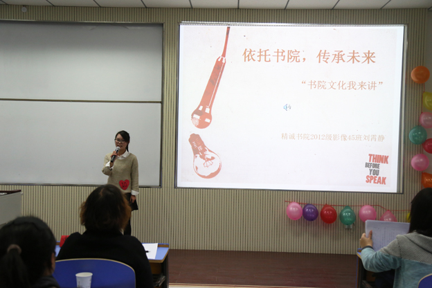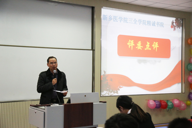 10月29日晚,精诚书院主办的“书院文化我来讲”主题演讲比赛总决赛在平原新区第一教学楼B402教室举行。精诚书院党总支副书记赵元雪老师参加本次大赛,思想政治理论课教学部申家字老师、资讯中心王德胜老师、精诚书院辅导员李彤老师担任本次大赛的评委。