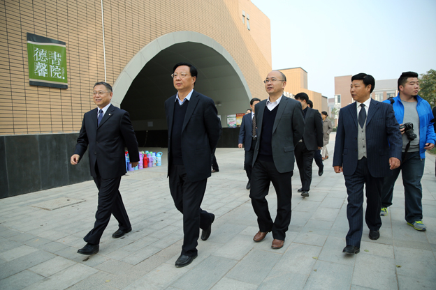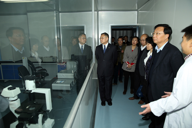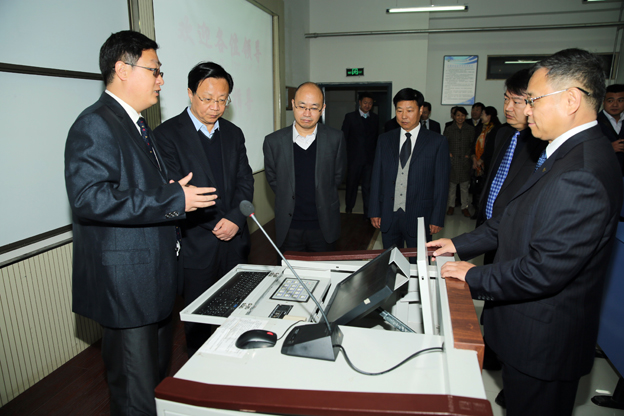 在大学生创业孵化园,高体健等领导亲切询问学生创业者的经营时间、投资、价格、效益等情况。领导们察看了学院餐厅,询问卫生安全、水电收费等情况;参观了精诚书院的学生宿舍,了解住宿条件、人员数量等信息;在第一教学楼听取了院领导关于平原校区规划图、教学楼建设情况的汇报,查看了部分教室多媒体设施。在基础医学院,参观了基础医学院解剖实验室、数码互动实验室、干细胞实验室,详细听取教师的介绍,观看了设备演示。