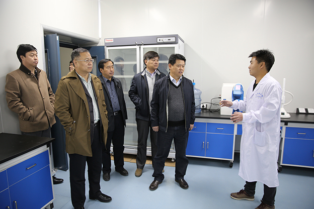 王福伟一行首先参观了我院学生餐厅和教学楼等地,对我院基础设施的建设进度和教学设备的先进质量表示了肯定。随后,王福伟一行在杨捷的带领下参观了我院的干细胞实验室,并观看了专业人员的操作演示。