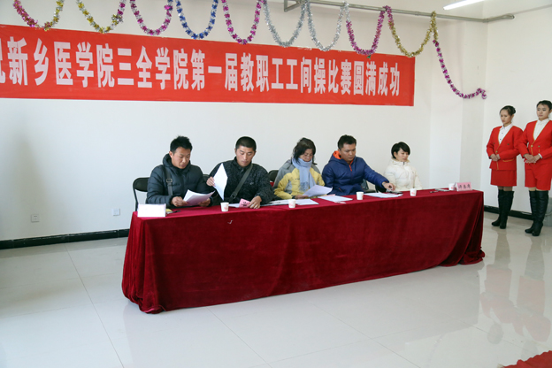 首先入场的是基础医学院工会一组,他们以第九套广播体操开场;外国语言学系工会的《三只小熊》尽显可爱之风;基础医学院工会二组队选择了“健身女皇”郑多燕的有氧操,更显潮流;护理学院工会动静结合,将护士的温柔、医生的责任感及医学工作者对医学的热爱表达得淋漓尽致;其它参赛队也以动感的表演带动了现场气氛,展示了我院教职工的青春活力。