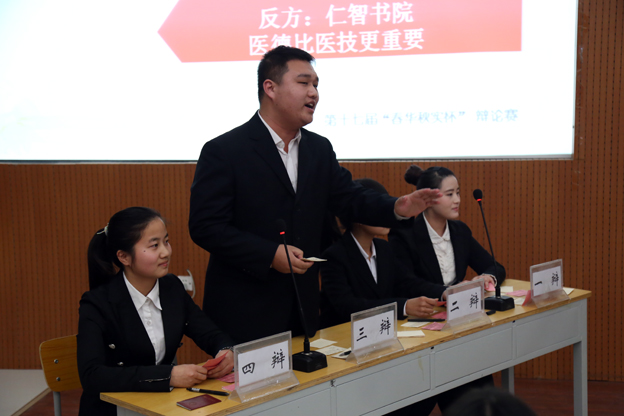 第二场辩论赛为冠亚之争,羲和书院代表队和仁智书院代表队围绕“医技与医德谁更重要”展开激烈辩论。在开篇陈词阶段,有的辩手幽默诙谐,逗得全场笑声连连;有的辩手沉着冷静,应答自如,引得场上掌声不断。在接下来的自由辩论环节,双方你来我往,唇枪舌战,双方从多角度论证了己方观点,将比赛现场气氛推向了高潮。总结陈词环节,正反方辩手清晰的思路和巧妙的陈词给观众留下了深刻印象。评委王潭老师点评,他指出在,辩论赛场上辩手的语气与声调尤其重要,它决定了辩论赛的精彩与否,只有谈吐有气势,个人见解独到,才能在赛场上突出辩手的优势。