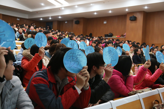 12月18日晚,仁智书院“仁智之星”超级演说家2014年度总决赛在平原校区D2大教室举行,仁智书院500余名同学观看了比赛。担任此次比赛评委的有思想政治理论课教学部副主任王炜烨、管理学院常务副院长贾臻、院长办公室主任助理马素娟、学生事务发展部思想政治教育中心主任陈刘方、通识教育管理中心教师张海强,以及20名学生代表组成的大众评审团。