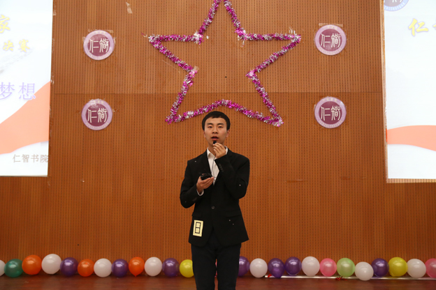 据悉,此次活动为仁智书院品牌性活动之一,共有8名“仁智之星”周冠军入围决赛。比赛分为选手亮相、你说我听、你演我看三个环节。“你说我听”环节中选手们用他们严谨的思维和流利的语言赢得现场阵阵掌声。第三环节“你演我看”,各位选手的即兴模仿表演更是带给大家不一样的经典,表演夸张诙谐,动作high翻全场。经过激烈角逐,8号选手张欣慰赢得本场比赛冠军,他将在2015年的总决赛中迎战新一轮的“仁智之星”,守护自己的擂主地位。
