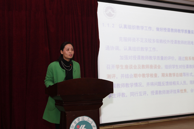 汇报结束后,杨捷首先对学院各部门一年来的辛勤付出和努力工作表示感谢,对全体三全人一年的劳动成果表示肯定。随后,杨捷分别对各单位的工作进行了总结点评,他肯定了各单位工作中的亮点、成绩,同时也指出了工作中存在的不足及下一步的努力方向。总结点评后,杨捷对学院2015年的工作进行了总体部署,他指出,2015年将是我院向应用技术大学转型的关键之年,也是任务艰巨的一年。在2015年,我院将面临转型发展与独立学院教育工作合格评估两项任务,他要求学院各单位:第一,加强规范管理;第二,加快改革步伐,推进学院转型;第三,加强师资队伍和管理队伍建设。