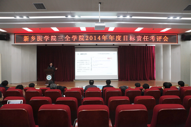 1月24日至25日,我院在新乡校区学术报告厅举行学院2014年年度目标责任考评会。我院领导王志凯、杨捷、王金文、秦国亮、王彦杰、王洪兴、张钢、沈雁霞出席,各职能部门、书院、院(系部)负责人参加,会议由发展战略与考核部主任顾欢主持。