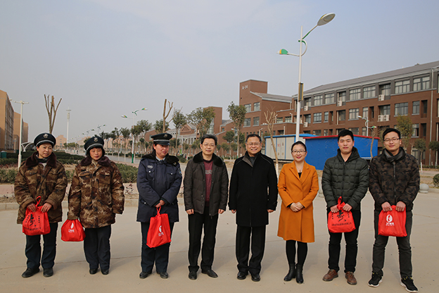 在两校区的保卫科、公寓楼等处,院领导与坚守岗位的职工亲切握手交谈,向各部门工作人员表示衷心的感谢和新年的问候,并为值班人员送来了节日慰问品,祝愿他们及家人在新的一年里工作顺利,身体健康,阖家幸福。