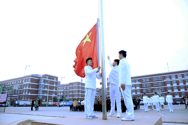 3月2日清晨,我院在新乡校区篮球场隆重举行新学期首次升国旗仪式,500余名师生迎着曦和朝阳列队参加