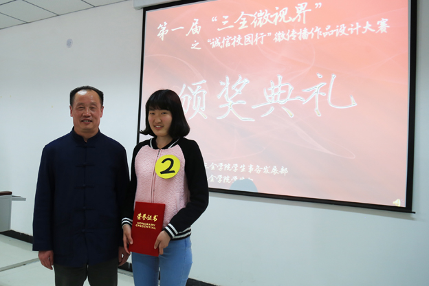 4月13日,在平原校区第一教学楼C201教室,由学生事务发展部主办、校学生会承办的第一届“三全微视界”之“诚信校园行”微传播作品设计大赛终评顺利举办。我院党委副书记王金文出席。