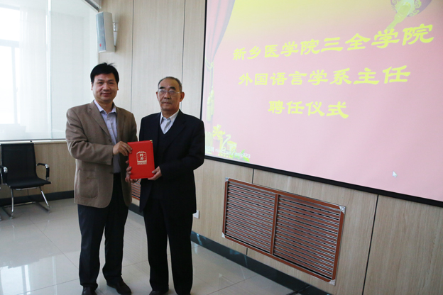 4月21日,史传高教授受聘为我院外国语言学系主任。聘任仪式在平原校区四楼会议室举行。我院副院长王彦杰出席,外国语言学系全体教职工参加,仪式由人力资源部主任樊永兵主持。