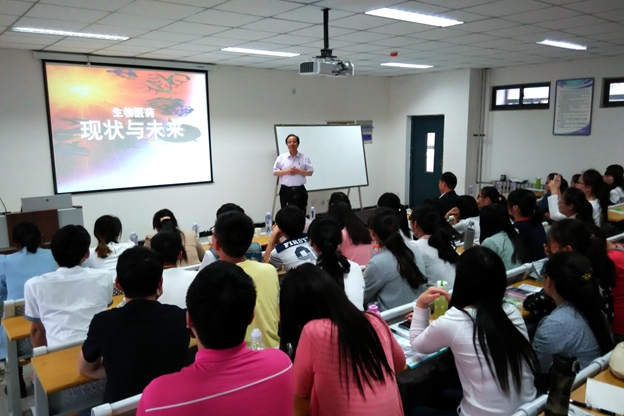 王云龙讲解了国内外生物制药研究进展、生物制药行业发展热点、生物制药产业存在的问题以及生物医药发展方向与策略,他重点介绍了生物制药的现状与未来,并与学生热情互动。随后,刘仲敏对我省生物医药发展现状进行了详细的分析和解读,并给大家详细讲解了我省生物医药的发展历史。