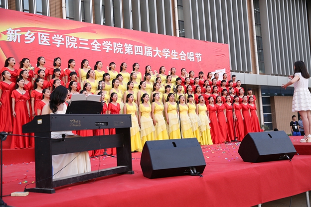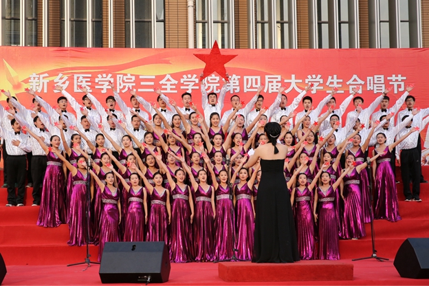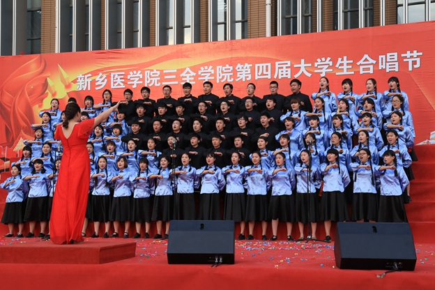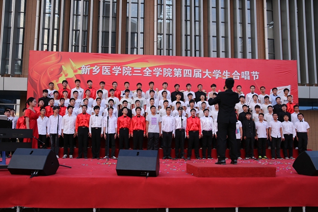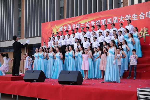 最后,我院艺术团合唱队为大家带来《打靶归来》。5月14日,这支队伍曾在新乡医学院第十四届大学生合唱节中荣获二等奖及最佳指挥奖。他们伴着笛声哼唱着,强烈的节奏带动现场的同学们也跟着哼奏起来。