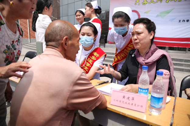 5月22日上午,我院携手北京市护理学会分别在新乡市洪门社区、启明社区同时举行主题为“携手三全千里医护传深情,共享义诊和谐社区同健康”科普义诊活动,这也是北京市护理学会科普工作委员会“科普之春”活动的延伸之一。