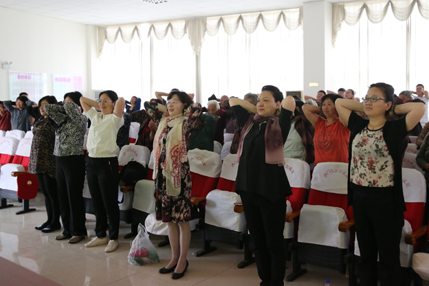 在洪门社区,严红护士长首先为社区群众做了口腔疾病预防及治疗的报告,之后带领大家学会“刷牙”。她结合自己的刷牙经历,就牙齿常见问题,假牙的维护,控制菌斑等方面做了详细阐述,并普及“巴斯刷牙法”。之后,靳翠玲护士长就脊柱健康教给大家一起做健身操,她强调“疾病在防不在治”“爱护身上每一个零件”。在她的带动下,大家一起站起来做健身操,现场气氛一片温馨活跃。
