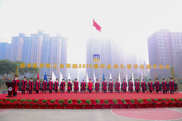 See You Again,不说再见。617日上午,我院2015届毕业生毕业典礼暨学位授予仪式在新乡校区篮球场隆重举行。新乡医学院副校长、我院董事毛兰芝教授,中美集团总裁、我院董事长陈逸飞,我院院长、学位评定委员会主席杨捷,学院学位评定委员会委员和全体院领导出席,各院(系、部)和职能部门负责人及部分教师代表、家长代表、毕业班辅导员和2015届全体毕业生参加。我院党委书记王志凯主持仪式。
