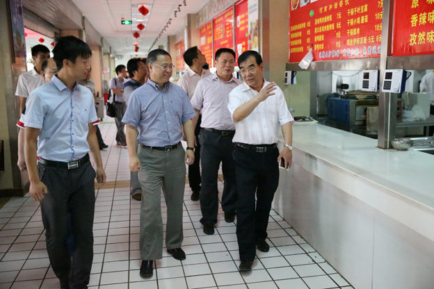 原志庆一行先后察看了第一教学楼、精诚书院、餐厅、二期学生公寓工地、院系楼、监控室等地。在第一教学楼听取了我院院长杨捷关于平原校区基本情况的介绍和学院党委副书记张钢关于我院平原校区安全生产工作的汇报;在各个检查点,听取了相关部门的工作汇报。