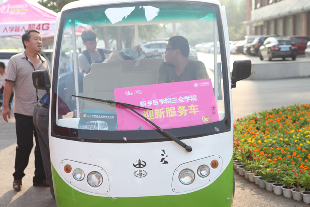 学院选派100余名教师以及120多名志愿者开展迎新服务,调派大巴车分别在火车站、高铁站接送新生及家长来校。新乡校区校门口设有4辆迎新服务车,不间断的接送新生的行李至住宿楼、门口乘车点,往返两校之间接送新生及行李。洪门派出所来校协助保卫科人员维持交通秩序。学生志愿者在校门口和主干道为新生提供报到咨询、手续办理、行李寄存以及搬运等服务。