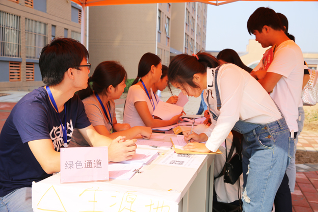 新生报到分别在各书院进行。书院在公共区域内设置新生资格审查处、签到处、咨询处、行李寄存处、家长休息室等服务点,新生独自到自己所在书院办理手续、领取物品、入住寝室,这样大大节省了时间。迎新工作人员耐心负责,新生注册队伍整齐有序。