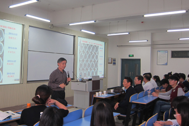 药学院闫福林教授对王新志教授的基本情况做了简单的介绍,并对王教授的到来表示热烈欢迎。讲座伊始,王教授提出了“勤劳手,科学脑,人文心,世界观,包容度,担上肩”的主题开场白,他从医学人的视角讲述了做人与养生的奇特关系,整个会场气氛热烈、掌声不断。随后,王教授结合自己独特的经历对“分享”一词做了定义,并与我们分享了“团结是金,卖方理念,对N级负责,教师如家长”等四个重要理念。他以自己切身的感受向我们讲述了做人的道理、做事的风格和做学问的精神,教会我们要懂得“自己救自己”、要懂得“规避风险”。 整场讲座视角独特、观点新颖,王教授语言风趣幽默,论点精辟而富有哲理。