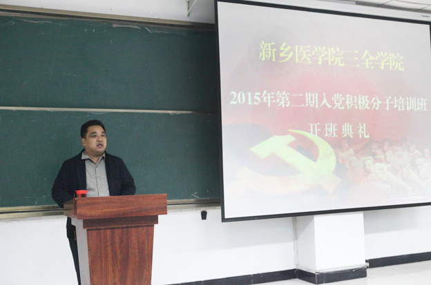 为提高我院入党积极分子的党性修养,我院于11月7日,在平原校区第一教学楼B103教室、新乡校区问学楼101教室分别举办了2015年第二期入党积极分子培训班开班典礼我院党委副书记王金文张钢分别出席了两校区的开班仪式。共计434名学员参加了培训。