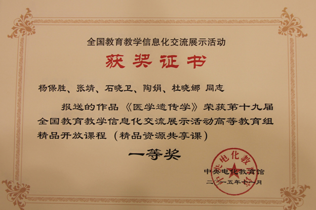 11月13日-15日,在第十九届全国教育教学信息化大奖赛决赛上,我院选拔推荐的精品资源共享课《医学遗传学》经现场展示、答辩,专家组评审,获得一等奖,这是我院参与此项活动(2011-2015年)首次获得一等奖。