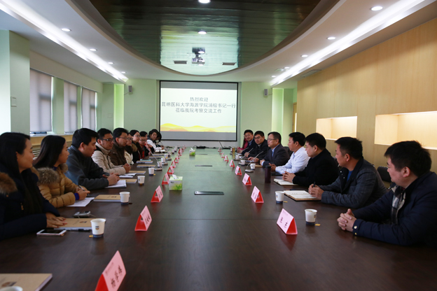 12月14日,昆明医科大学海源学院党委副书记浦榕一行前来我院考察交流,院领导王志凯、杨捷、王金文、王洪兴热情接待